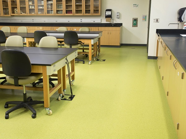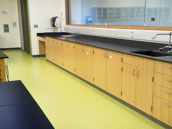 The COCC Science Center opened its doors last fall, and at the core of the 45,000-square-foot building are biology, chemistry and physical science labs that are connected to adjacent public hallways by large interior windows. Each of the labs are color-coded to identify their affiliated department, which made it important for architects to find a floor covering whose color palette complemented their colorful vision for the space. The school also required a floor with the ability to resist both chemical spills and the movement of equipment and furniture in the labs. norament® grano met these design and performance challenges, while offering other important advantages to the college. Students and staff are enjoying comfort underfoot as they stand for extended periods of time on the resilient flooring, and the school took an important step toward securing its Earth Advantage Commercial certification, thanks in part to the sustainable properties that characterize all nora® flooring products.