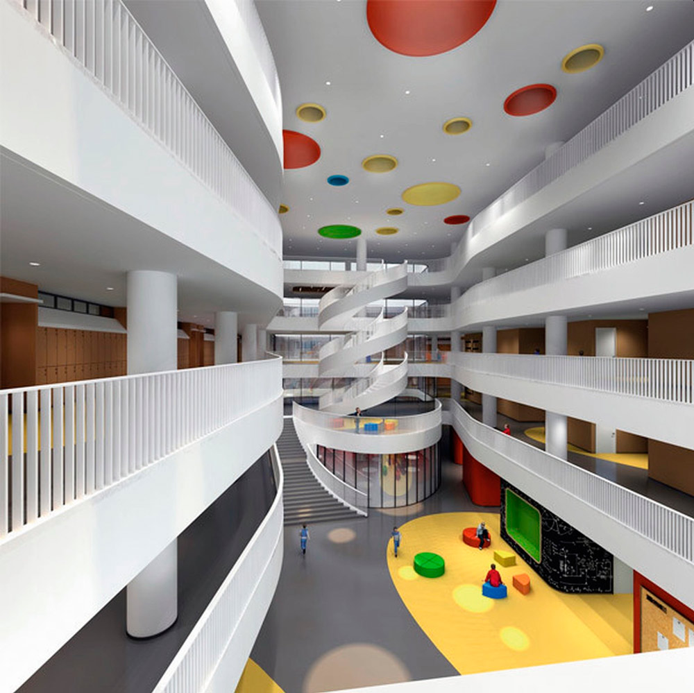Opened in 2017, Weifang Hansen International School in the new Shandong Technology Centre was designed by the major Chinese education provider 271 education group and, with a British director and numerous English-speaking teachers, is a perfect synthesis of Chinese and Western culture. Girls and boys are taught here from kindergarten to high school. "Everything for the children" is not only the educational concept of the school, but also the architectural design principle. There are modern facilities such as multifunctional art centres and robotic classrooms, as well as a wide range of leisure activities with swimming pools and gyms. Three factors were particularly important for the builders and users of the floor: longevity, environmental compatibility and comfort. The planned service life of the school is 50 years, so the floor coverings for the highly frequented areas such as the entrance hall, corridors, games room and library had to be particularly robust . nora floor coverings are made of rubber through and through, are virtually indestructible due to their extremely dense surface and can last decades. The advantage: The less frequently a floor needs to be replaced, the lower the life cycle cost. In addition, nora floors are the only elastic floor coverings that do not require a coating. There is no need to clear out classrooms or block corridors for recoating floors. The floors are reasy to clean with simple wiping – an advantage for life cycle assessment and maintenance.