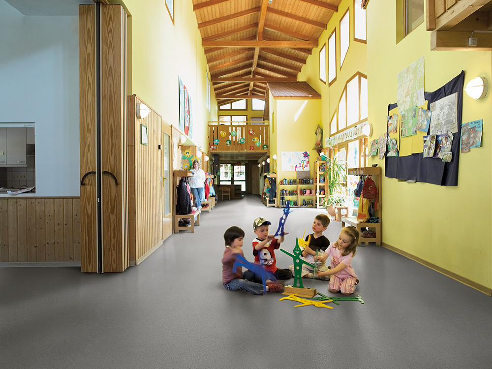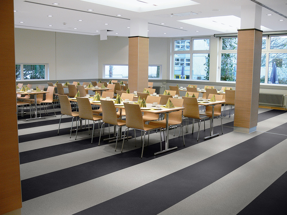 Revêtement de sol en caoutchouc se caractérisant par une alliance parfaite entre le caoutchouc à l’élasticité permanente et les éclats de granit incorporés de façon subtile et aléatoire. La fine incrustation des éclats dans le noraplan® unita lui confère une apparence discrète. Le design est délibérément simple et puriste.