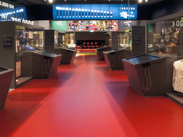 Another bonus: Rubber floorings are permanently resilient, and so reduce footfall noise for a quieter and more pleasant building ambience. “The good acoustic properties of the floor covering are hugely important when we consider the numerous media installations and the high rooms,” stressed Keßeler. At the German Football Museum, not only the sport “Made in Germany” scores – also the rubber floorings from Weinheim present a convincing combination of design and function.