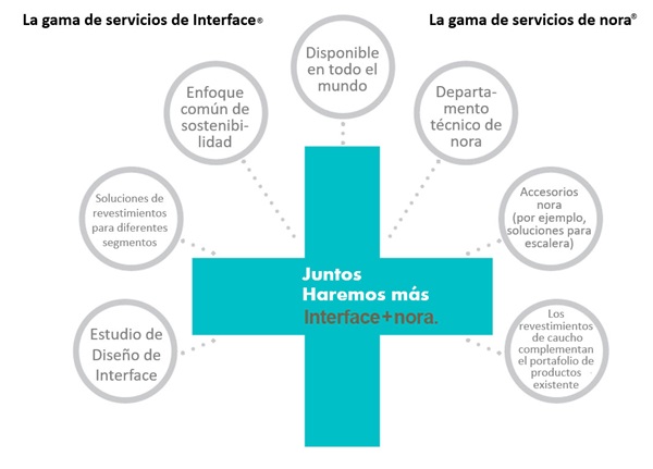 Interface y nora son la combinación perfecta, con portafolios de productos que se complementan idealmente con cero duplicación. Juntos, ofrecemos una combinación perfecta de productos y experiencia en aplicaciones para abrir nuevos espacios para nuestros clientes en todo el mundo, con una mejor cobertura de servicio global y disponibilidad de productos.