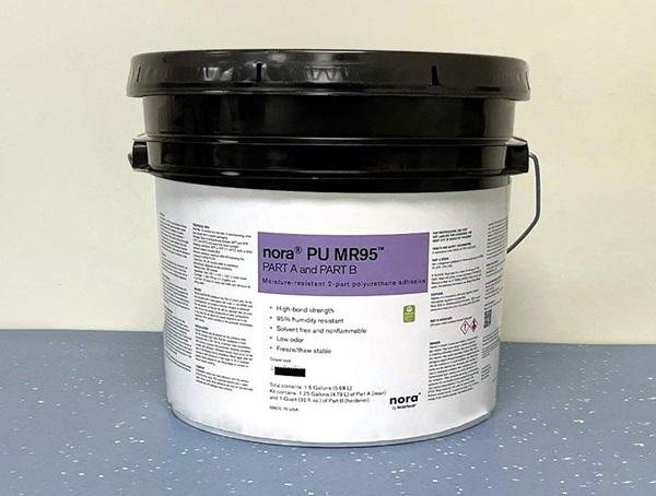 nora® PU MR95™ es un adhesivo de uretano de dos componentes diseñado específicamente para la instalación de revestimientos de piso de caucho de nora en superficies adecuadas. Cuando las partes A y B se mezclan completamente, forman un adhesivo reactivo que cura en forma de película dura y flexible con una buena resistencia a la humedad de la superficie y a muchos químicos.
