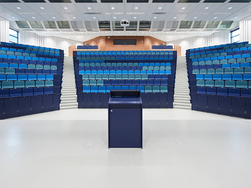 Dieser Bodenbelag ist in satten und neutralen Farben mit einem Ton-in-Ton-Granulatdesign erhältlich. Neben der klassischen Hammerschlagoberfläche gibt es sechs Farbtöne auch mit einer eleganten, leicht strukturierten Two-Tone-Oberfläche, die sich beide für sehr stark beanspruchte Bereiche eignen. Einige Farben sind auch als wiederaufnehmbare Version norament 975 LL und als Formtreppen verfügbar.