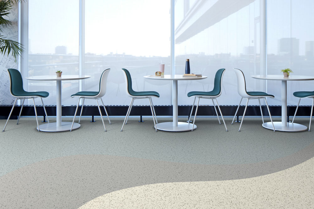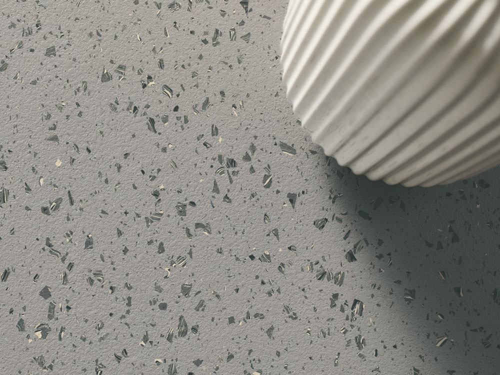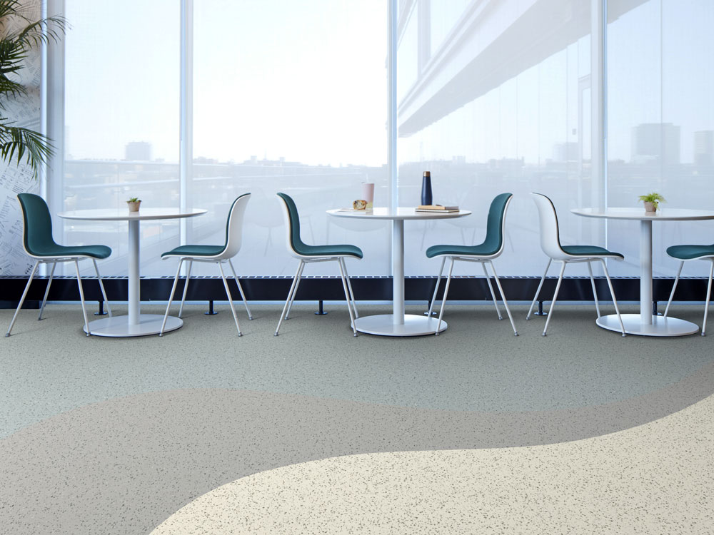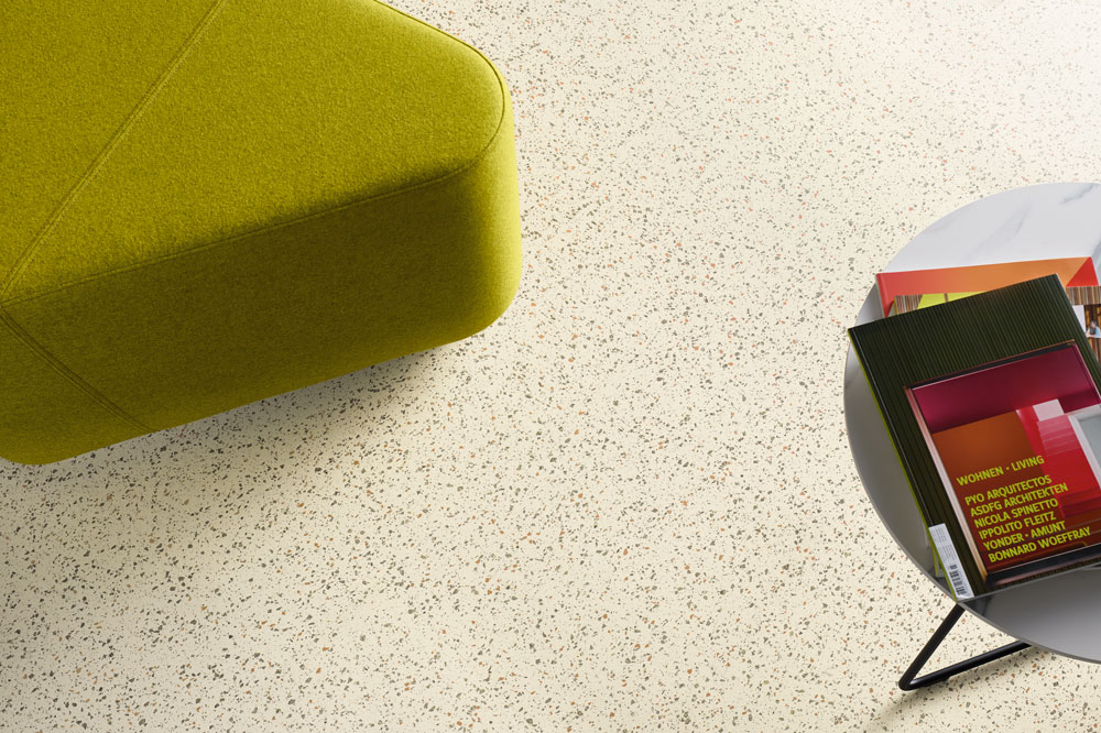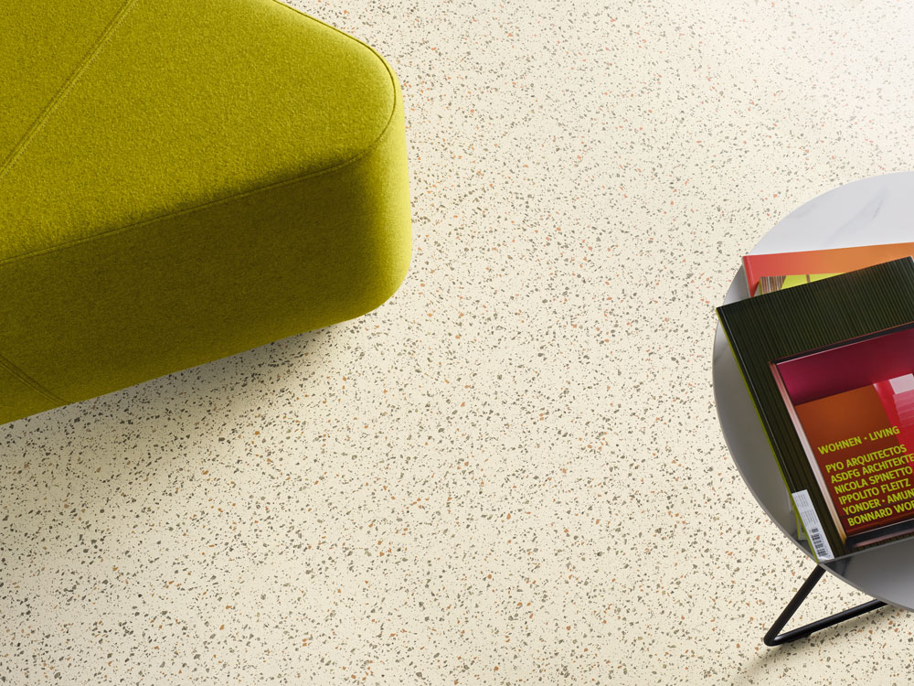 norament pado tiles feature a variegated granular design inspired by ancient terrazzo with a slightly structured two-tone surface for maximum demands. Choose from an array of neutral and elegant or colorful and striking options to create a unique aesthetic.