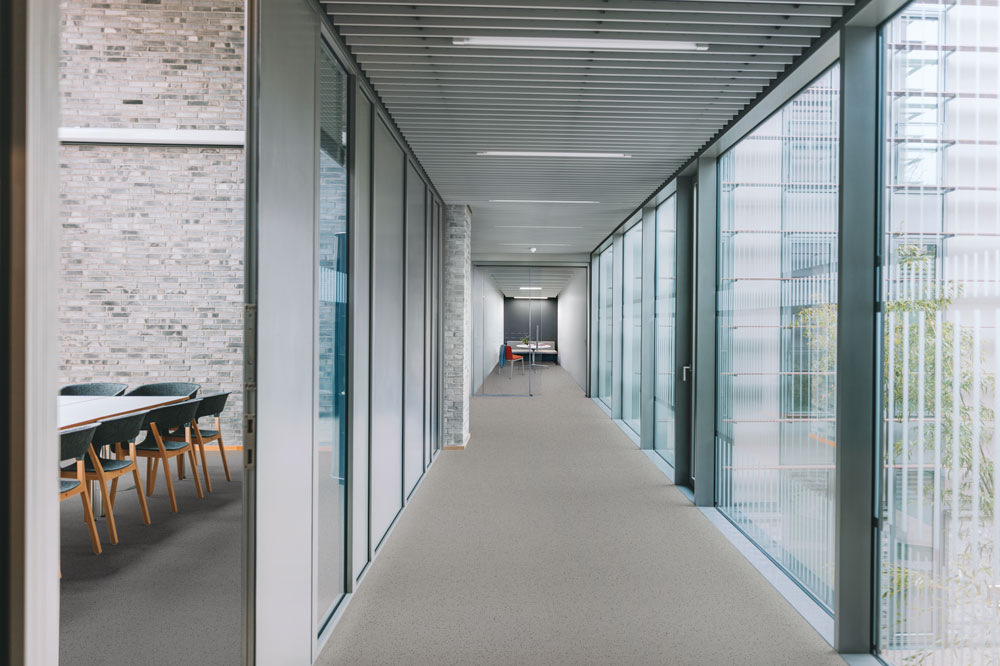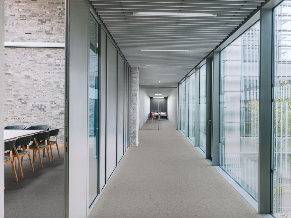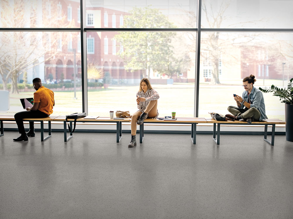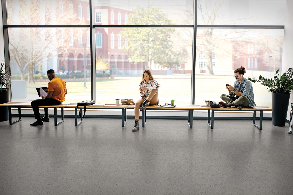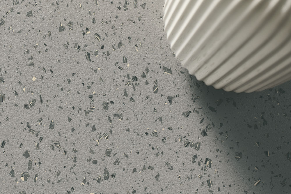norament pado tiles feature a variegated granular design inspired by ancient terrazzo with a slightly structured two-tone surface for maximum demands. Choose from an array of neutral and elegant or colorful and striking options to create a unique aesthetic.